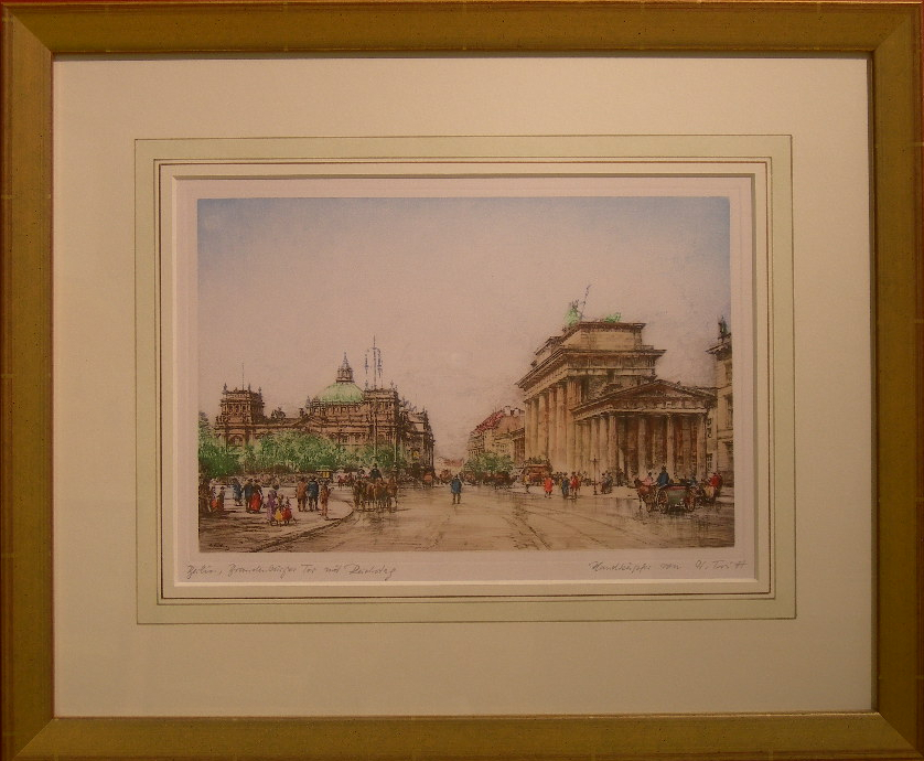 Description: Handkupfer farbig gedruckt, gerahmt im Rahmen Gold mit Chamoir-Passepartout und Zierstreifen Bildgröße (cm): 26x17 Blattgröße (cm): 40x30 Rahmengröße (cm): 41,5x33,5